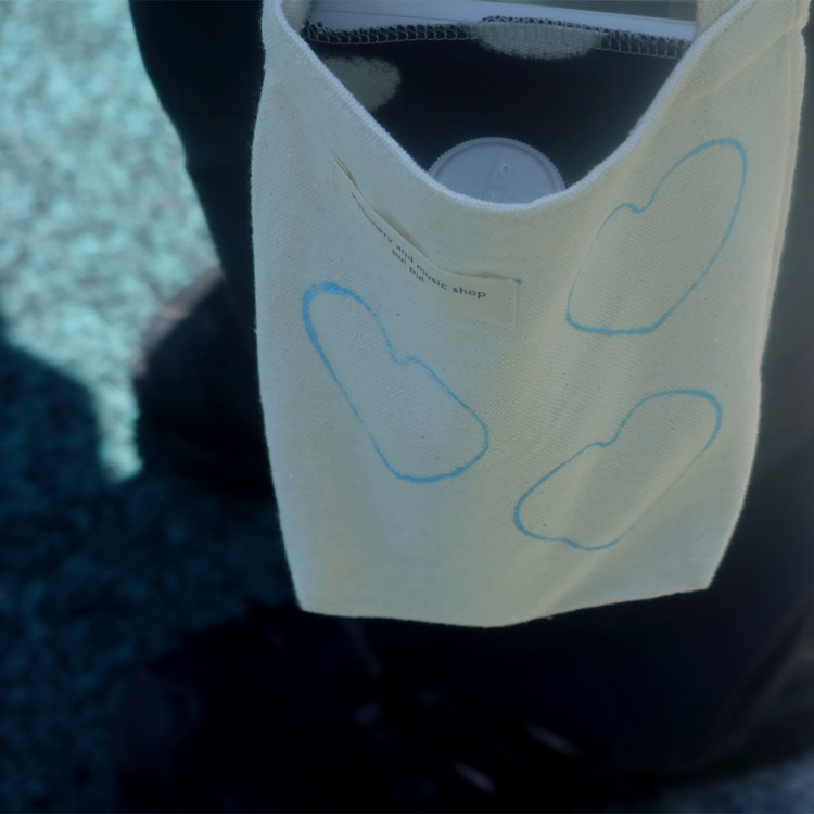 하트가 콕 박혀있는 가벼운 여름 가방.