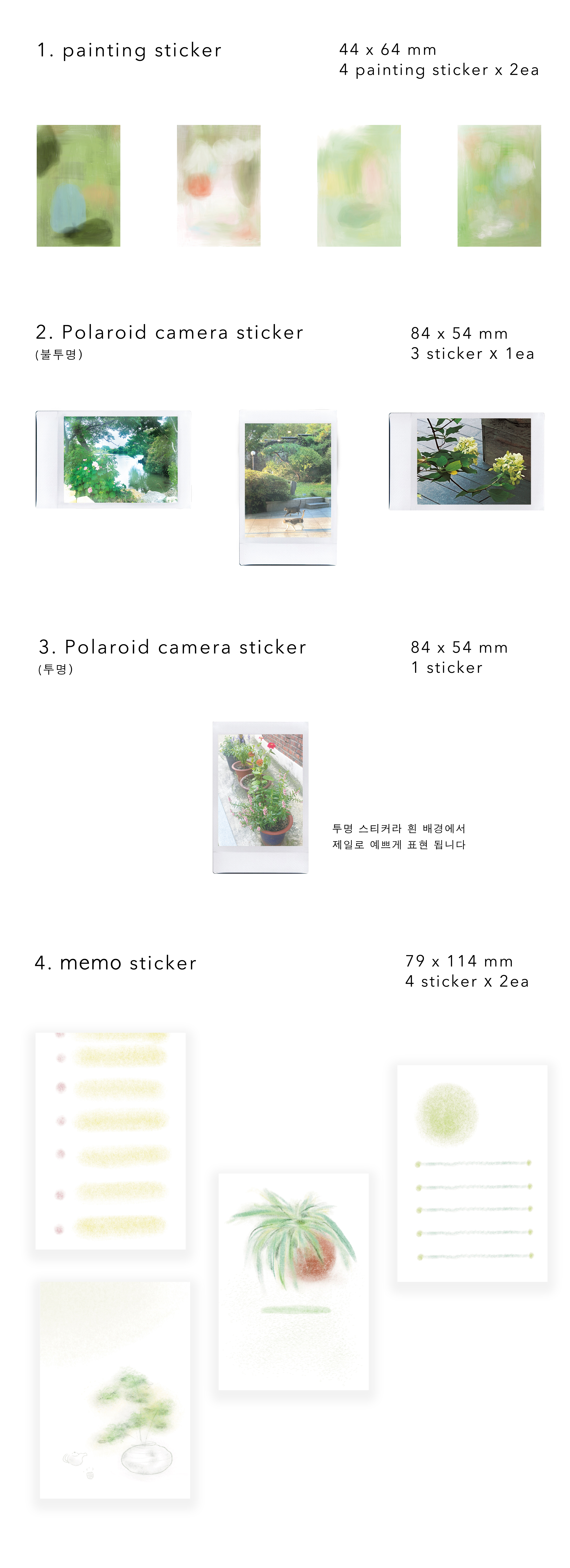 폴라로이드, 추상 그림, 귀여운 메모지.